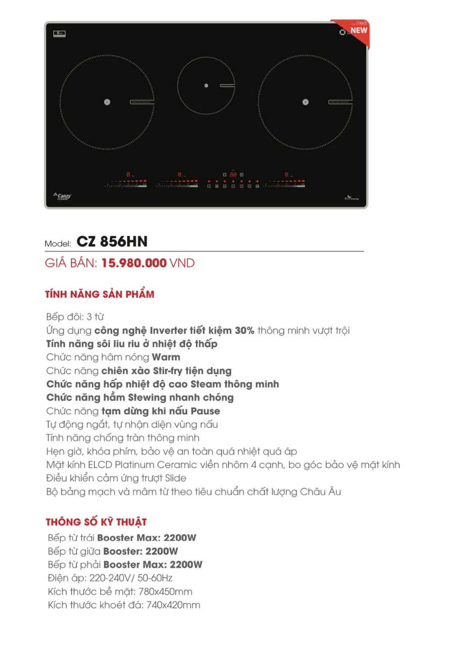 Bếp từ 3 vùng nấu Canzy CZ856HN (2025) – Premium cao cấp – Sôi liu riu Inverter – Nhiều chức năng nấu nâng cao – 3 vùng nấu độc lập – Bảo hành chính hãng toàn quốc