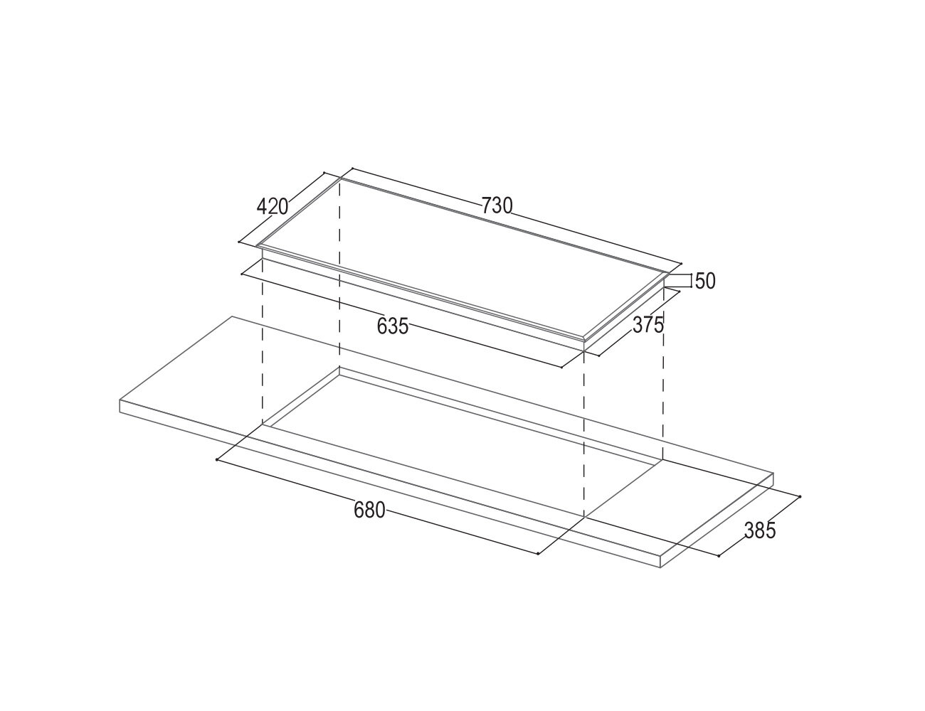 | Kích thước | 710 x 410 mm (Cắt đá: 680 x 380 mm) |