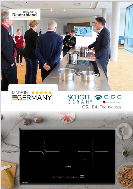 Bền bỉ theo thời gian: Mặt kính Schott Ceran và mâm từ EGO Germany cho tuổi thọ cao.