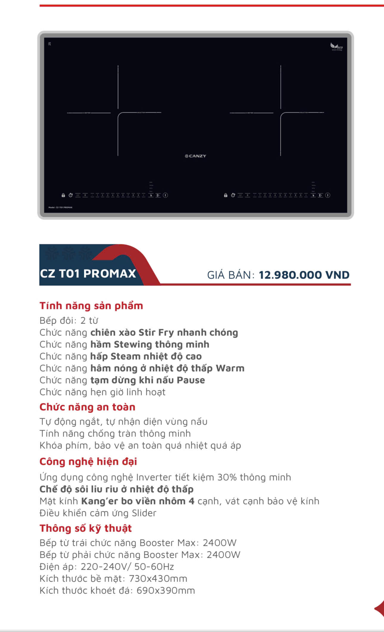 Đánh giá Bếp Từ Đôi Canzy CZ T01 Promax – Inverter sôi liu riu