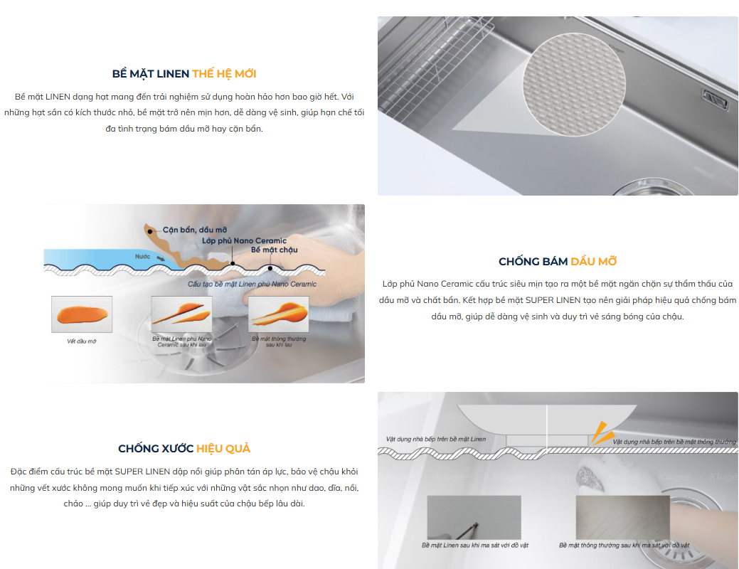 Đánh giá Chậu rửa bát Kluger KU6045FS Basic – LINEN chống xước, chống bám bẩn, Siphon Z SLIM, thoát nước nhanh – Chính hãng Kluger bảo hành toàn quốc