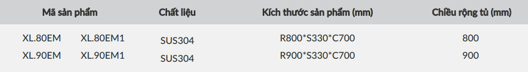 | Chiều rộng tủ yêu cầu | 800 mm |