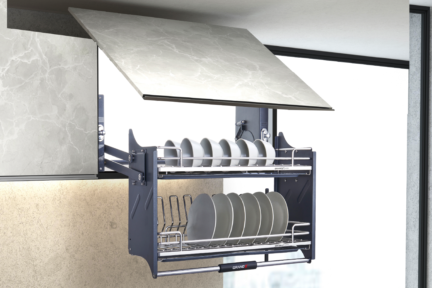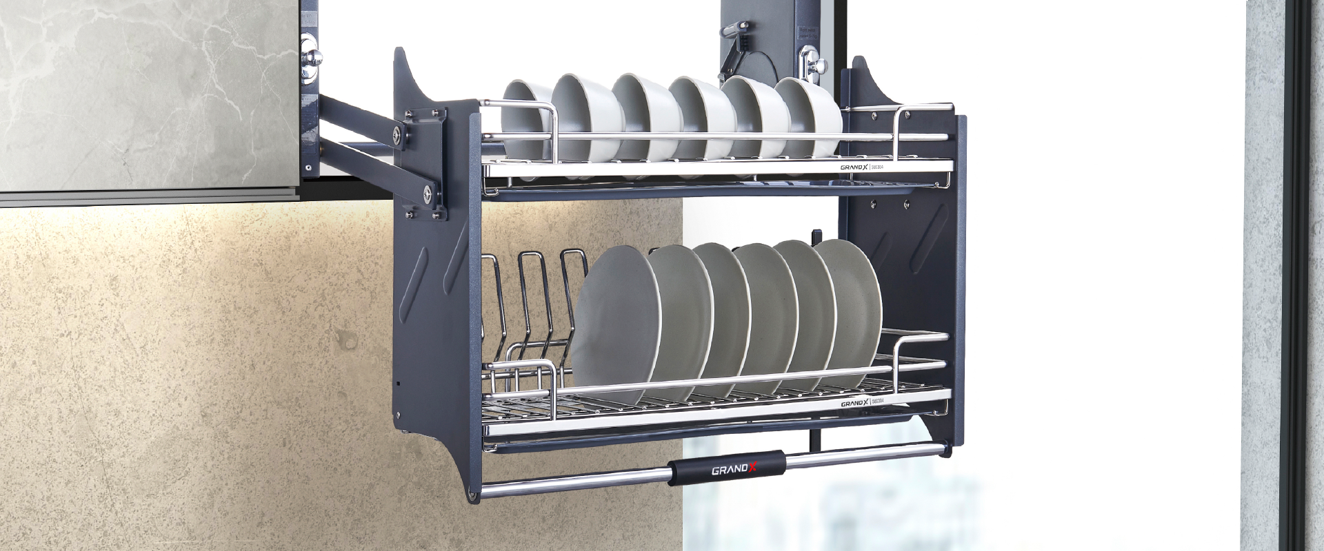 Giá bát nâng hạ GrandX XL.60M2 – Nan Oval SUS304 – Trợ lực thông minh – Kệ chén nâng hạ cao cấp
