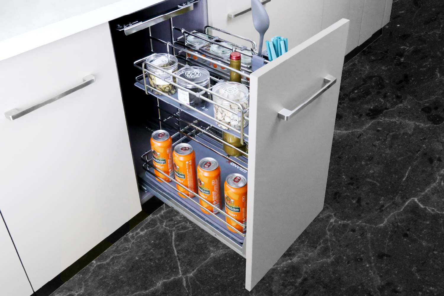 Giá dao thớt gia vị GrandX XK.30M nan Oval – Inox SUS304 – Bề mặt điện hóa xước mờ – Phụ kiện tủ bếp dưới cao cấp