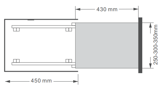 | Kích thước sản phẩm (mm) | R250 x S430 x C450 |