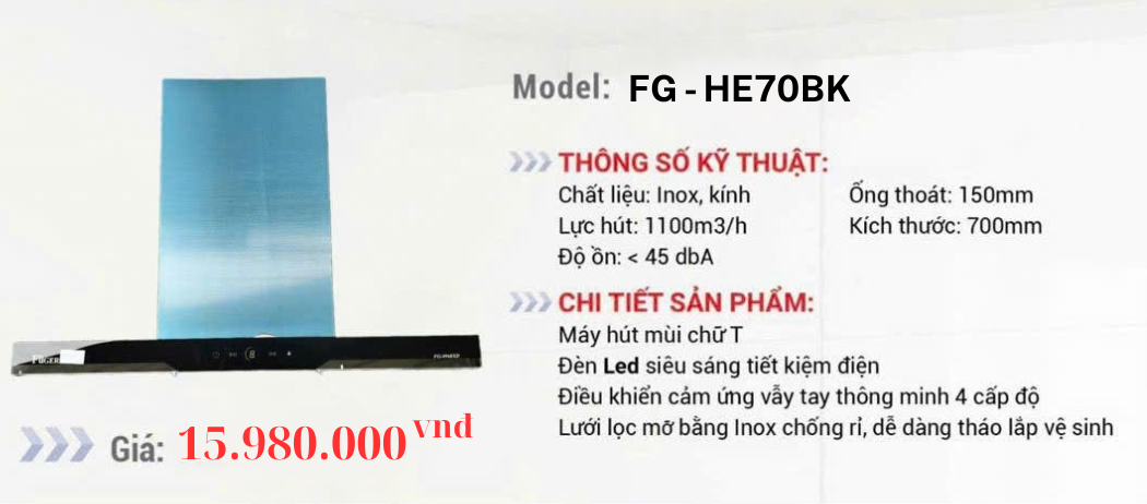 Bảng Thông Số Kỹ Thuật Fuger FG – HE70BK