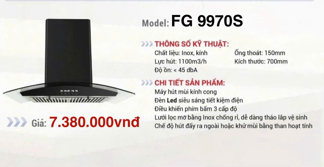 Hút mùi kính cong FUGER FG 9970S – Sang Trọng Hiệu Năng Vượt Trội – Chính Hãng Fuger – Bảo hành 2 năm toàn quốc