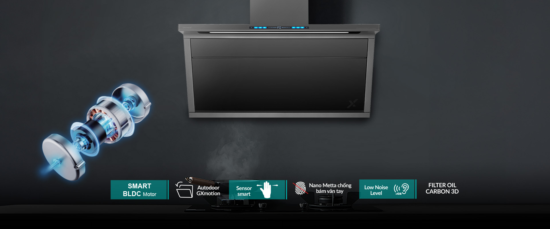 Đánh giá Máy hút mùi GrandX GX H70T88G ( Malaysia ) – Inverter BLDC 50% điện năng – 1150 m³/h Supper Booster