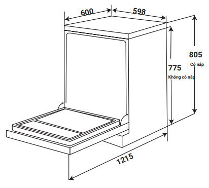 | Kiểu dáng | Máy rửa chén độc lập (Có thể lắp âm) |